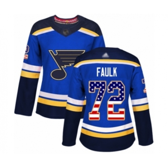 Women's St. Louis Blues #72 Justin Faulk Authentic Blue USA Flag Fashion Hockey Jersey