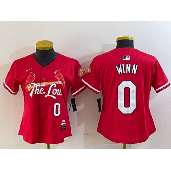 >Women's St Louis Cardinals #0 Masyn Winn Red 2024 City Connect Limited Stitched Baseball Jersey