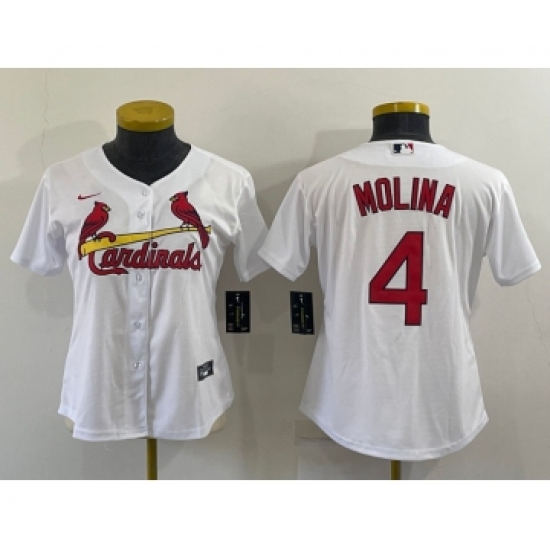 Women's St Louis Cardinals #4 Yadier Molina White Stitched MLB Cool Base Nike Jersey