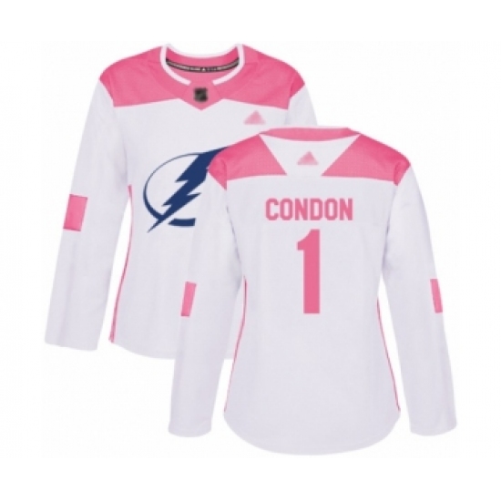 Women's Tampa Bay Lightning #1 Mike Condon Authentic White Pink Fashion Hockey Jersey