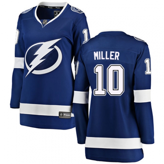 >Women's Tampa Bay Lightning #10 J.T. Miller Fanatics Branded Royal Blue Home Breakaway NHL Jersey