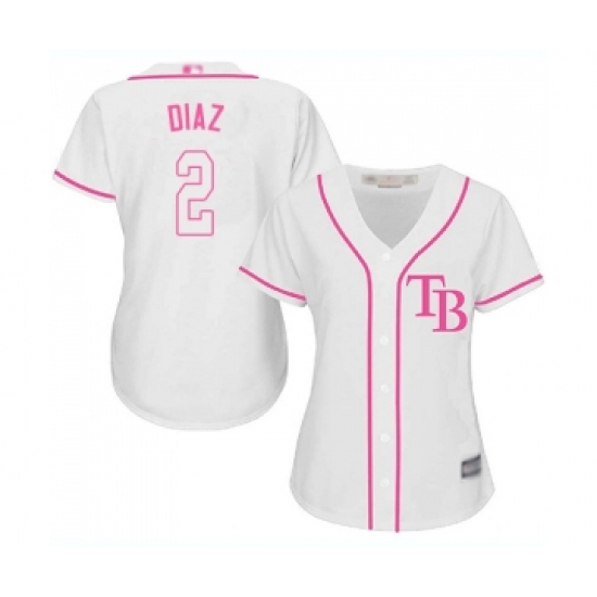 >Women's Tampa Bay Rays #2 Yandy Diaz Replica White Fashion Cool Base Baseball Jersey
