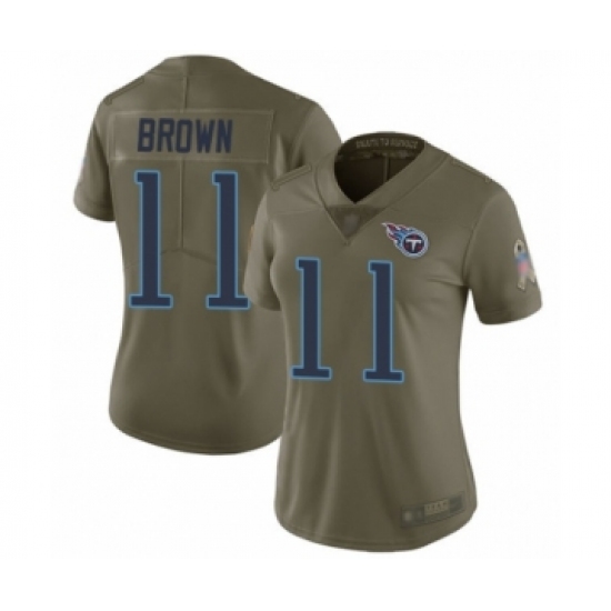 >Women's Tennessee Titans #11 A.J. Brown Limited Olive 2017 Salute to Service Football Jersey