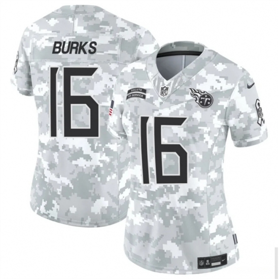 >Women's Tennessee Titans #16 Treylon Burks 2024 F.U.S.E Arctic Camo Salute To Service Limited Stitched Football Jersey(Run Small)
