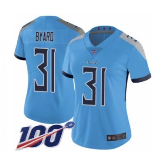 >Women's Tennessee Titans #31 Kevin Byard Light Blue Alternate Vapor Untouchable Limited Player 100th Season Football Jersey