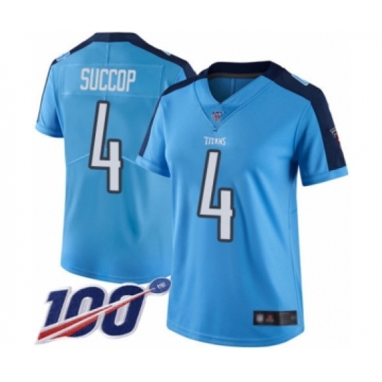 >Women's Tennessee Titans #4 Ryan Succop Limited Light Blue Rush Vapor Untouchable 100th Season Football Jersey