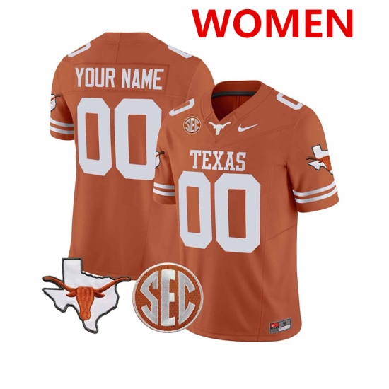 >Women's Texas Longhorns Active Player Custom Orange F.U.S.E. State Map & SEC Patch Stitched Jersey