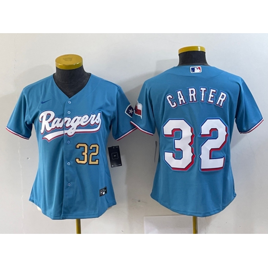 >Women's Texas Rangers #32 Evan Carter Light Blue Team Logo Cool Base Jerseys
