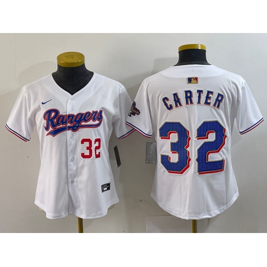 Women's Texas Rangers #32 Evan Carter Number White 2024 Gold Collection Limited Cool Base Jersey