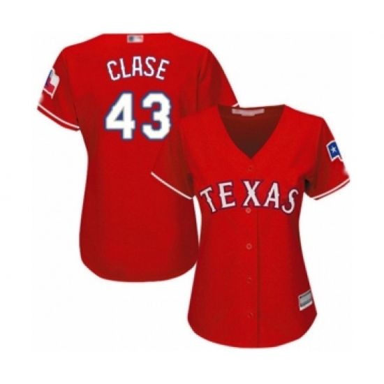 >Women's Texas Rangers #43 Emmanuel Clase Authentic Red Alternate Cool Base Baseball Player Jersey