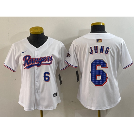Youth Texas Rangers #6 Josh Jung White 2024 Gold Collection Limited Cool Base Jersey