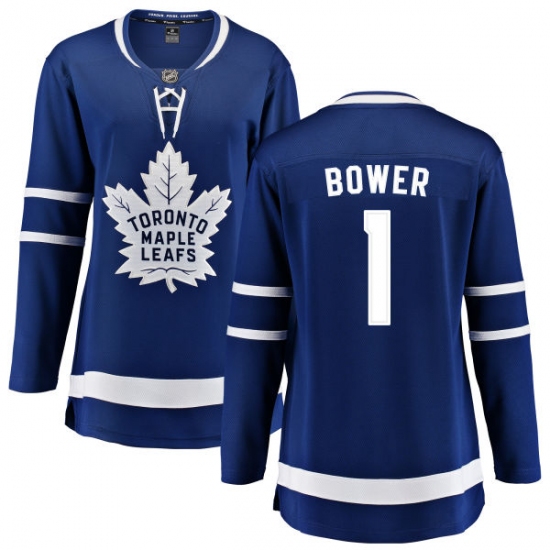 Home>NHL>Toronto Maple Leafs>Johnny Bower>Women's Toronto Maple Leafs #1 Johnny Bower Fanatics Branded Royal Blue Home Breakaway NHL Jersey