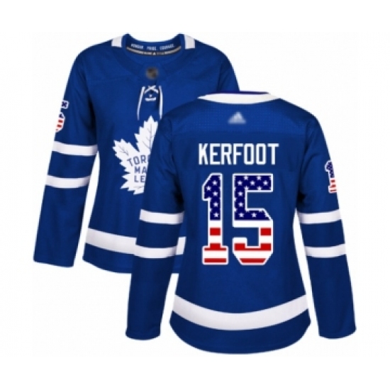 Women's Toronto Maple Leafs #15 Alexander Kerfoot Authentic Royal Blue USA Flag Fashion Hockey Jersey