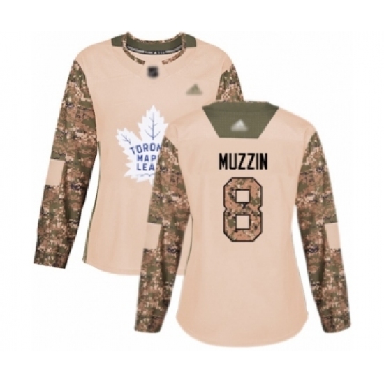 >Women's Toronto Maple Leafs #8 Jake Muzzin Authentic Camo Veterans Day Practice Hockey Jersey