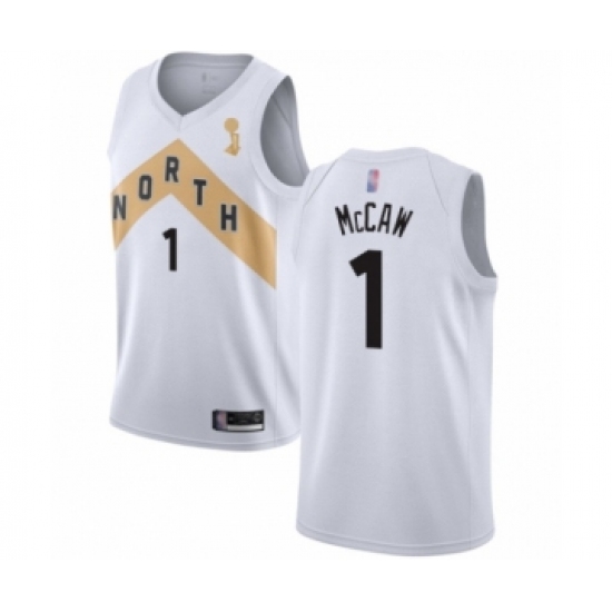 >Women's Toronto Raptors #1 Patrick McCaw Swingman White 2019 Basketball Finals Champions Jersey - City Edition