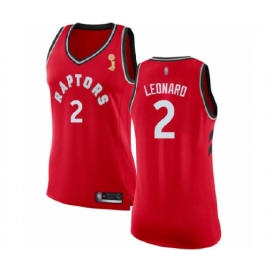 >Women's Toronto Raptors #2 Kawhi Leonard Swingman Red 2019 Basketball Finals Champions Jersey - Icon Edition
