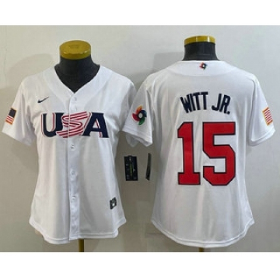 >Women's USA Baseball #15 Bobby Witt Jr 2023 White World Classic Replica Stitched Jerseys