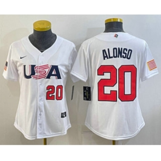 Womens USA Baseball #20 Pete Alonso Number 2023 White World Classic Stitched Jersey