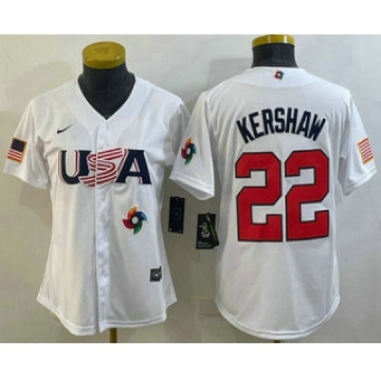 Women's USA Baseball #22 Clayton Kershaw 2023 White World Classic Stitched Jerseys