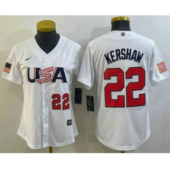Women's USA Baseball #22 Clayton Kershaw Number 2023 White World Classic Stitched Jerseys