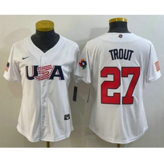 Women's USA Baseball #27 Mike Trout 2023 White World Classic Replica Stitched Jerseys