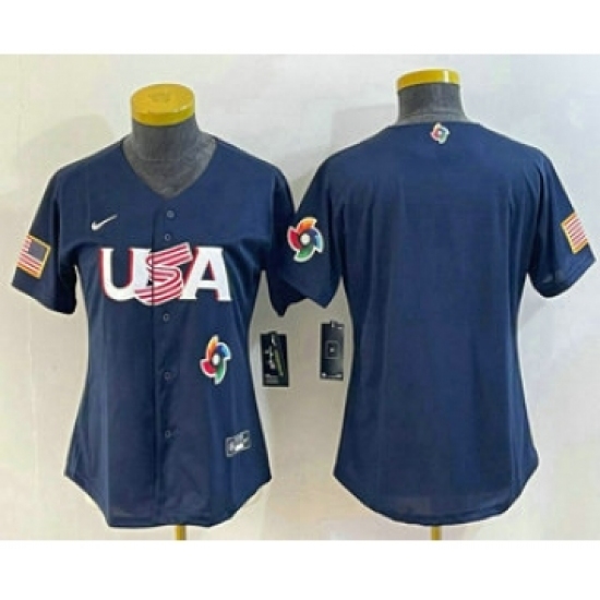 Women's USA Baseball Blank 2023 Navy World Classic Stitched Jerseys