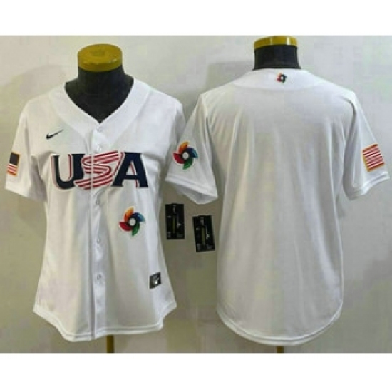 Women's USA Baseball Blank 2023 White World Baseball Classic Stitched Jersey