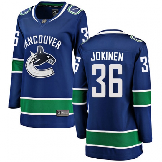 >Women's Vancouver Canucks #36 Jussi Jokinen Fanatics Branded Blue Home Breakaway NHL Jersey