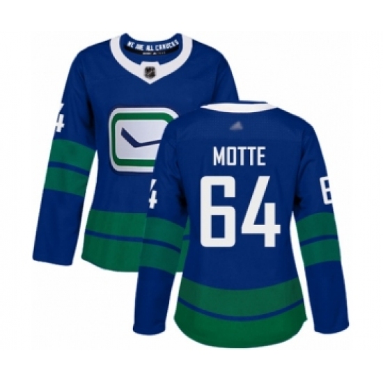 Women's Vancouver Canucks #64 Tyler Motte Authentic Royal Blue Alternate Hockey Jersey