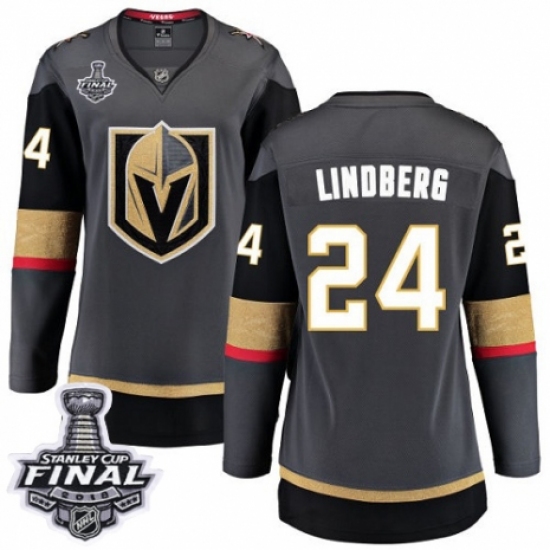 >Women's Vegas Golden Knights #24 Oscar Lindberg Authentic Black Home Fanatics Branded Breakaway 2018 Stanley Cup Final NHL Jersey
