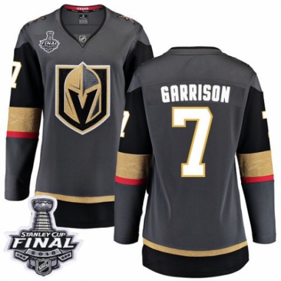 >Women's Vegas Golden Knights #7 Jason Garrison Authentic Black Home Fanatics Branded Breakaway 2018 Stanley Cup Final NHL Jersey