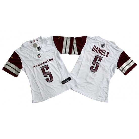 Women's Washington Commanders #5 Jayden Daniels White 2024 F.U.S.E. Draft Stitched Jersey(Run Small)
