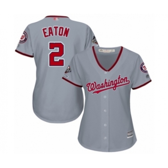 Women's Washington Nationals #2 Adam Eaton Authentic Grey Road Cool Base 2019 World Series Champions Baseball Jersey
