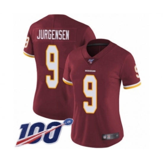 Women's Washington Redskins #9 Sonny Jurgensen Burgundy Red Team Color Vapor Untouchable Limited Player 100th Season Football Jersey