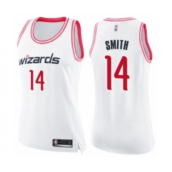 >Women's Washington Wizards #14 Ish Smith Swingman White Pink Fashion Basketball Jersey