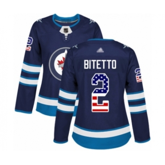 Women's Winnipeg Jets #2 Anthony Bitetto Authentic Navy Blue USA Flag Fashion Hockey Jersey