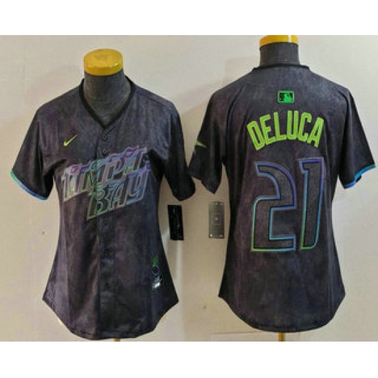 >Women'sTampa Bay Rays #21 Jonny DeLuca Charcoal 2024 City Connect Limited Stitched Jersey