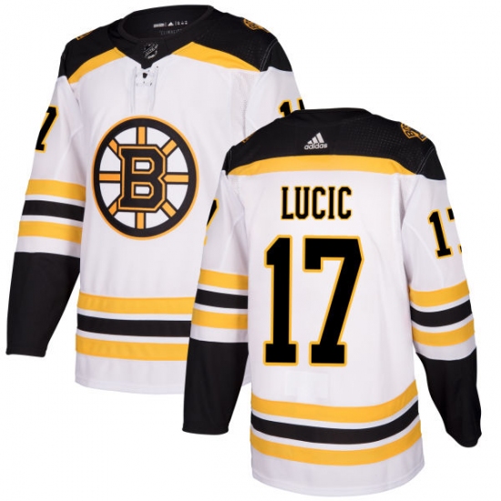 Youth Adidas Boston Bruins #17 Milan Lucic Authentic White Away NHL Jersey