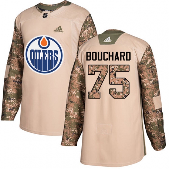 >Youth Adidas Edmonton Oilers #75 Evan Bouchard Authentic Camo Veterans Day Practice NHL Jersey