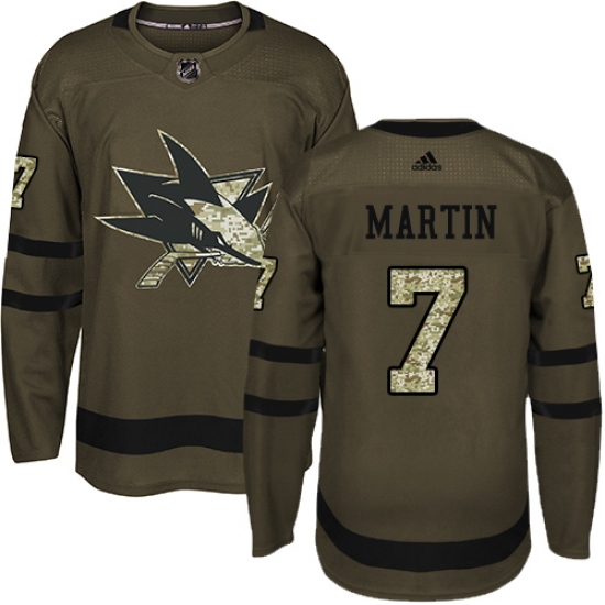 Home>NHL>San Jose Sharks>Paul Martin>Youth Adidas San Jose Sharks #7 Paul Martin Authentic Green Salute to Service NHL Jersey