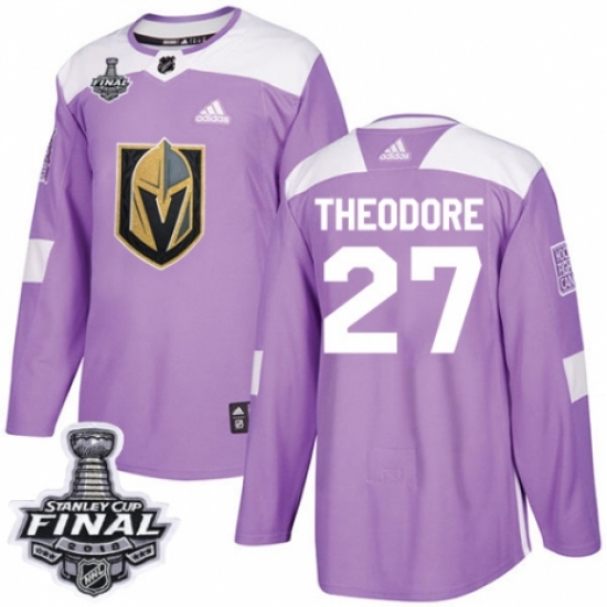 Youth Adidas Vegas Golden Knights #27 Shea Theodore Authentic Purple Fights Cancer Practice 2018 Stanley Cup Final NHL Jersey