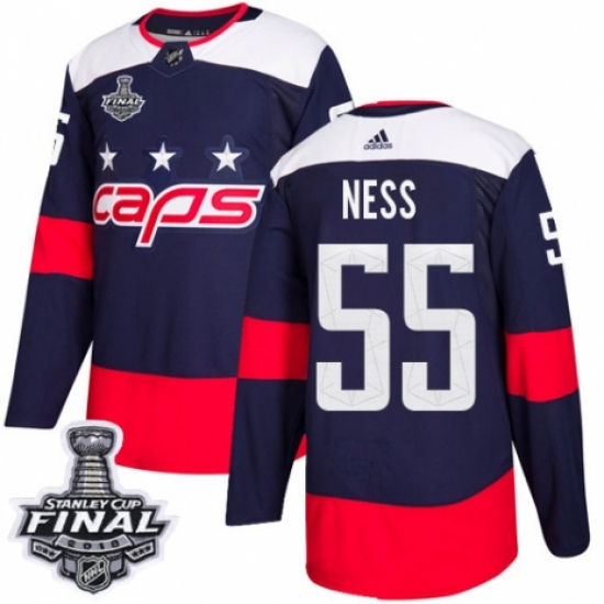 >Youth Adidas Washington Capitals #55 Aaron Ness Authentic Navy Blue 2018 Stadium Series 2018 Stanley Cup Final NHL Jersey