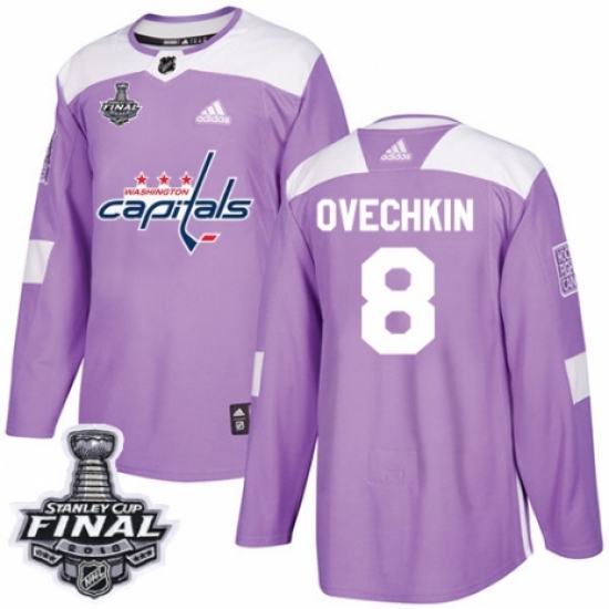>Youth Adidas Washington Capitals #8 Alex Ovechkin Authentic Purple Fights Cancer Practice 2018 Stanley Cup Final NHL Jersey