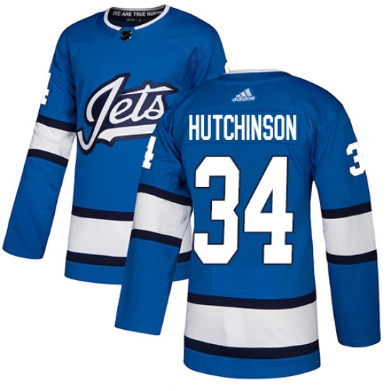 Youth Adidas Winnipeg Jets #34 Michael Hutchinson Authentic Blue Alternate NHL Jersey