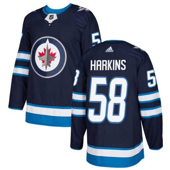 Home>NHL>Winnipeg Jets>Jansen Harkins>Youth Adidas Winnipeg Jets #58 Jansen Harkins Premier Navy Blue Home NHL Jersey
