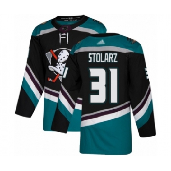 >Youth Anaheim Ducks #31 Anthony Stolarz Authentic Black Teal Alternate Hockey Jersey