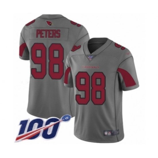 >Youth Arizona Cardinals #98 Corey Peters Limited Silver Inverted Legend 100th Season Football Jersey