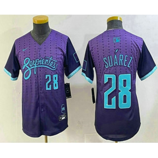 >Youth Arizona Diamondbacks #28 Eugenio Suarez Number Purple 2025 City Connect Limited Jersey