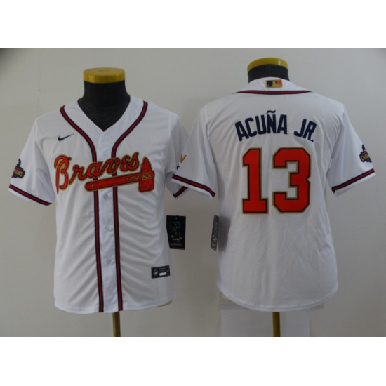 Youth Atlanta Braves #13 Ronald Acuna Jr. Nike White 2022 Gold Program Authentic Player Jersey