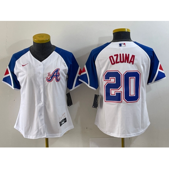 >Youth Atlanta Braves #20 Marcell Ozuna Number White 2023 City Connect Cool Base Stitched Jersey